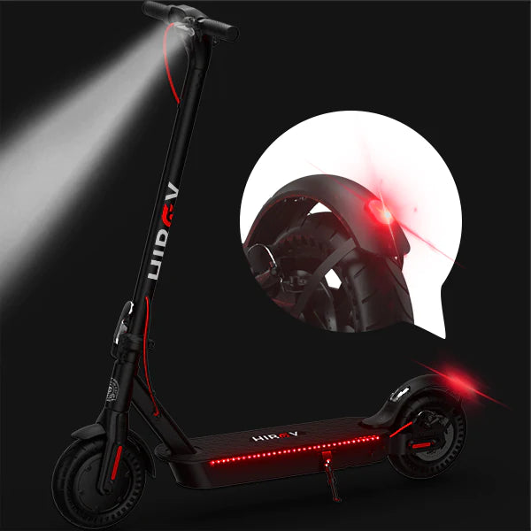 Riding safe at night with the taillights, headlights and sidelights on the Hiboy scooter.