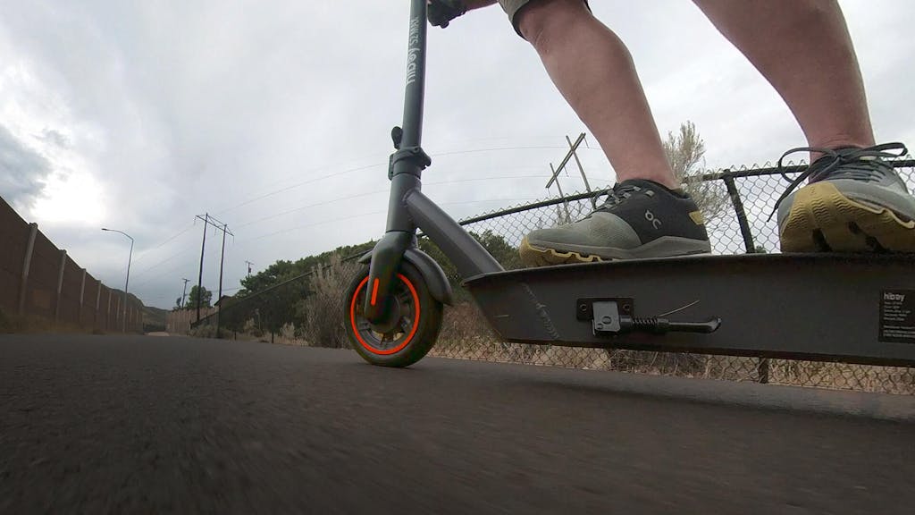 Smooth 10-inch pneumatic tires to absorb bumps, ensuring max comfort, max road 220lbs.